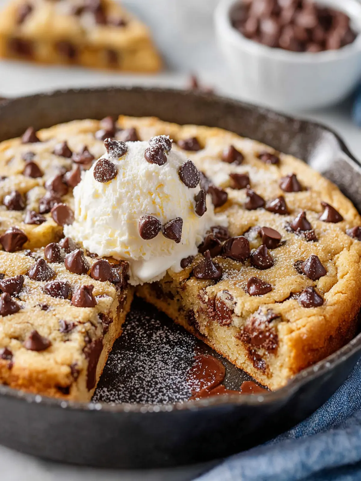 If a cast iron skillet isn’t available, don’t fret! You can use an oven-safe baking dish or a regular baking pan. Just be sure to adjust the baking time, as the thickness of the cookie may differ. Keep an eye on it towards the end to ensure it’s perfectly golden and has that signature ooey-gooey center.