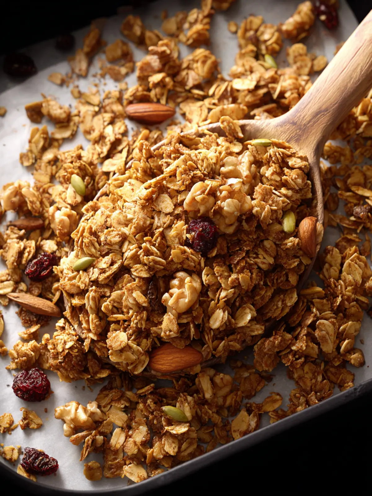 After baking, let your granola cool for about 20 minutes. This cooling time is essential for achieving that perfect crispy texture.
