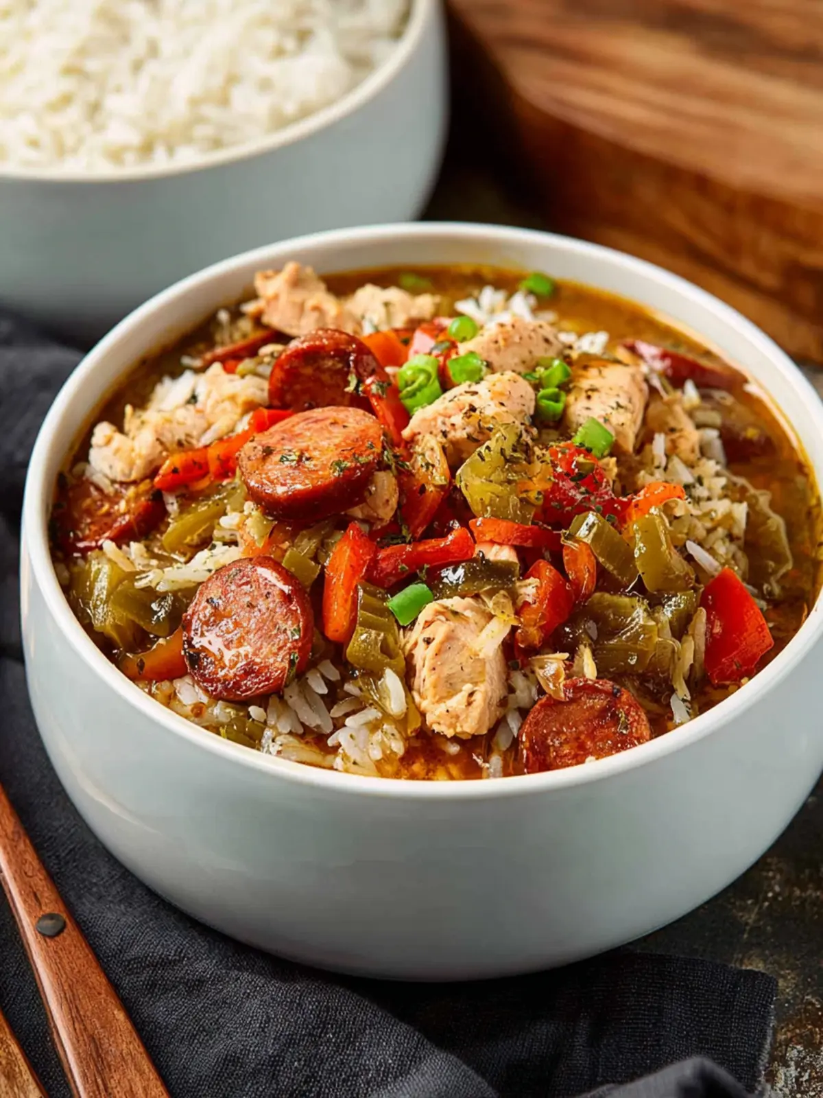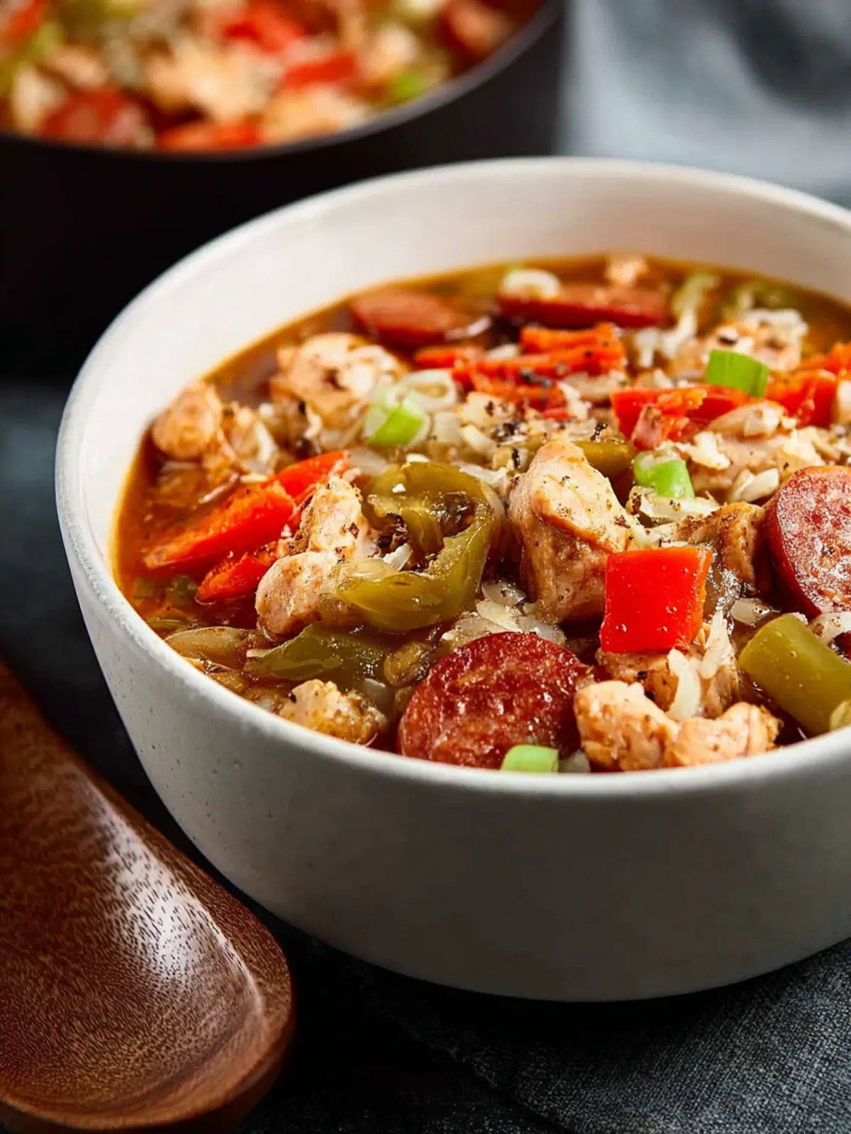 Flavor Adventure: Each spoonful is a delightful blend of spices, smoky sausage, and tender chicken, all simmered together to create a symphony of flavors. You’ll find yourself lost in the deep, savory broth that’s both satisfying and invigorating.
