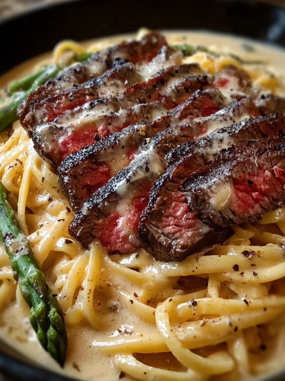 A delicious creamy steak alfredo pasta dish that’s perfect for a romantic dinner or special occasion.