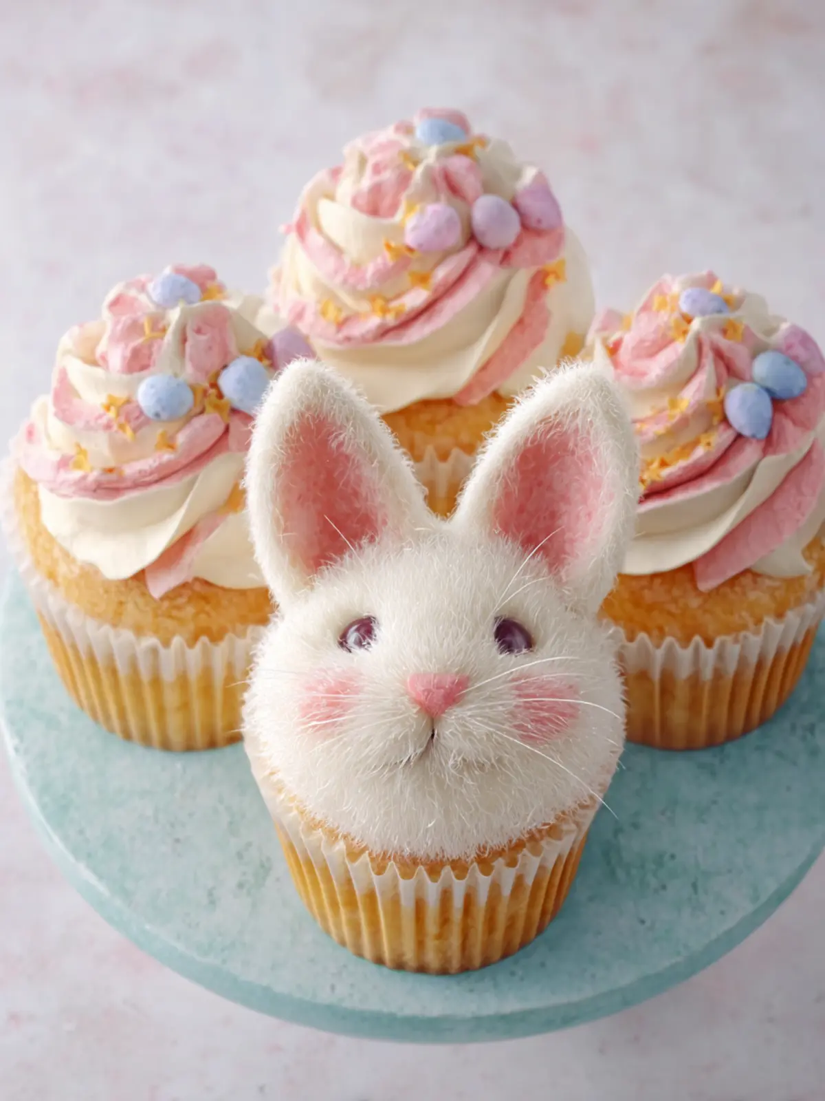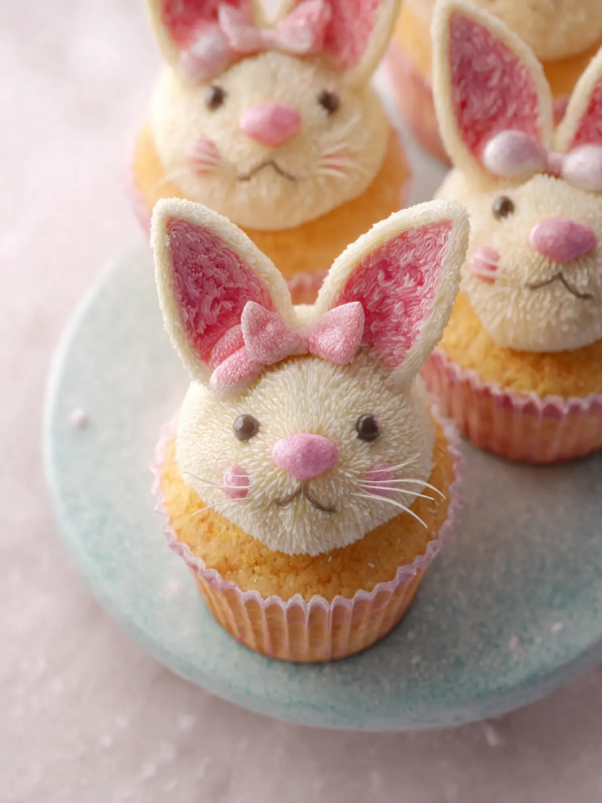 Delicious bunny face cupcakes perfect for any occasion.
