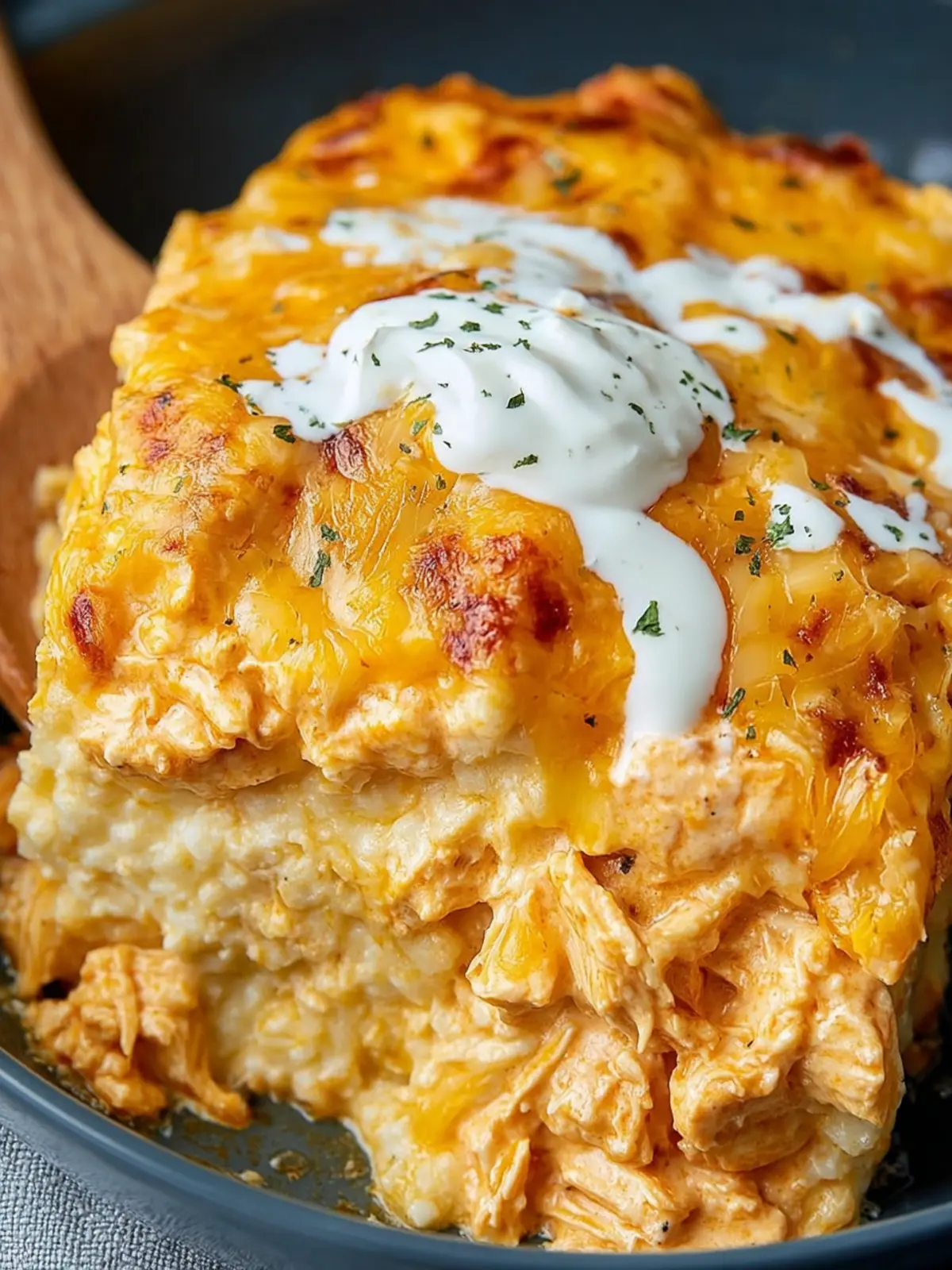 Additionally, this casserole is incredibly versatile. You can easily customize it to suit your tastes by adjusting the heat of the buffalo sauce or adding your favorite vegetables. Whether you’re a buffalo chicken aficionado or someone just venturing into the world of spicy flavors, this recipe is bound to please a crowd or even just yourself.