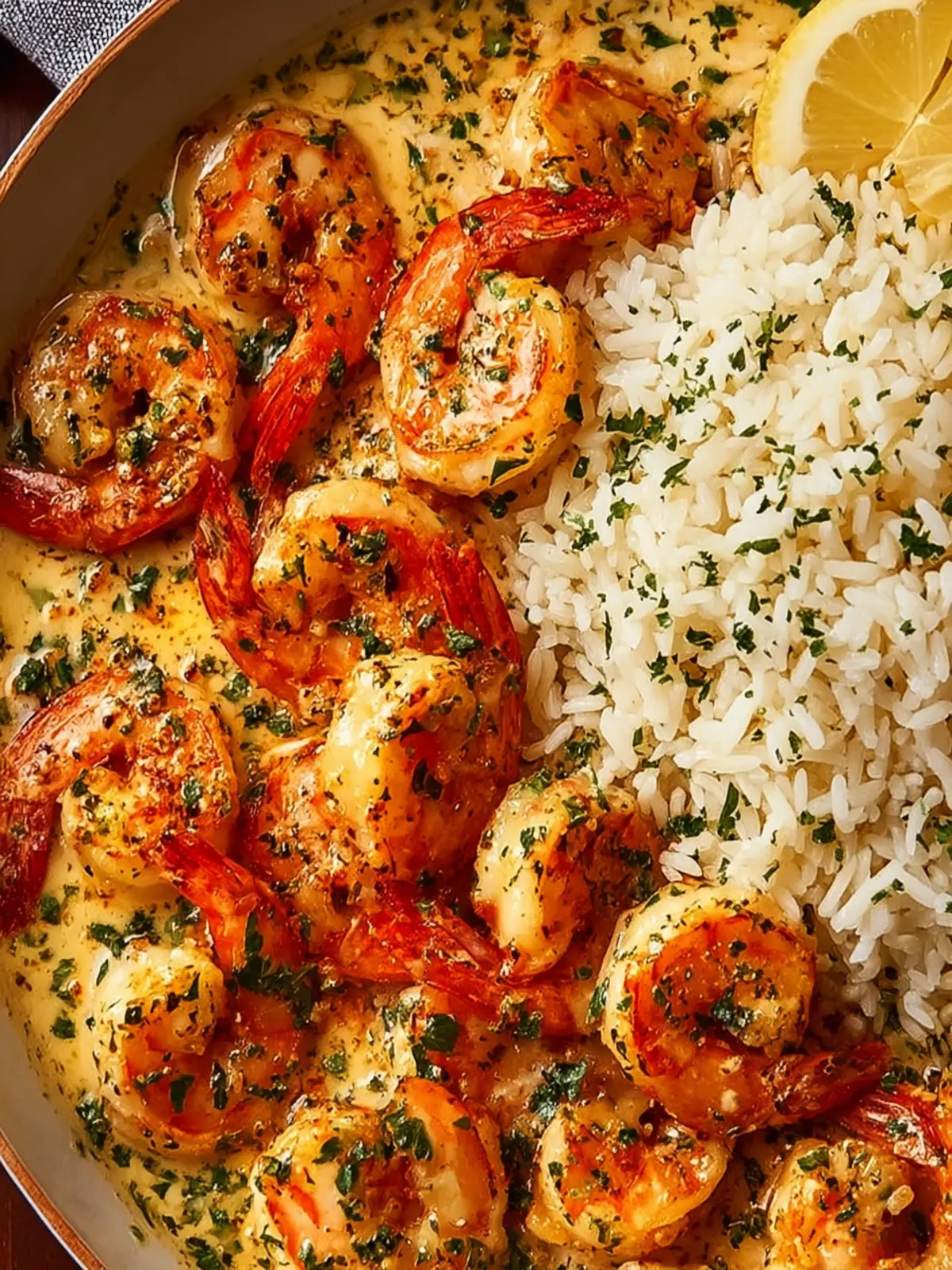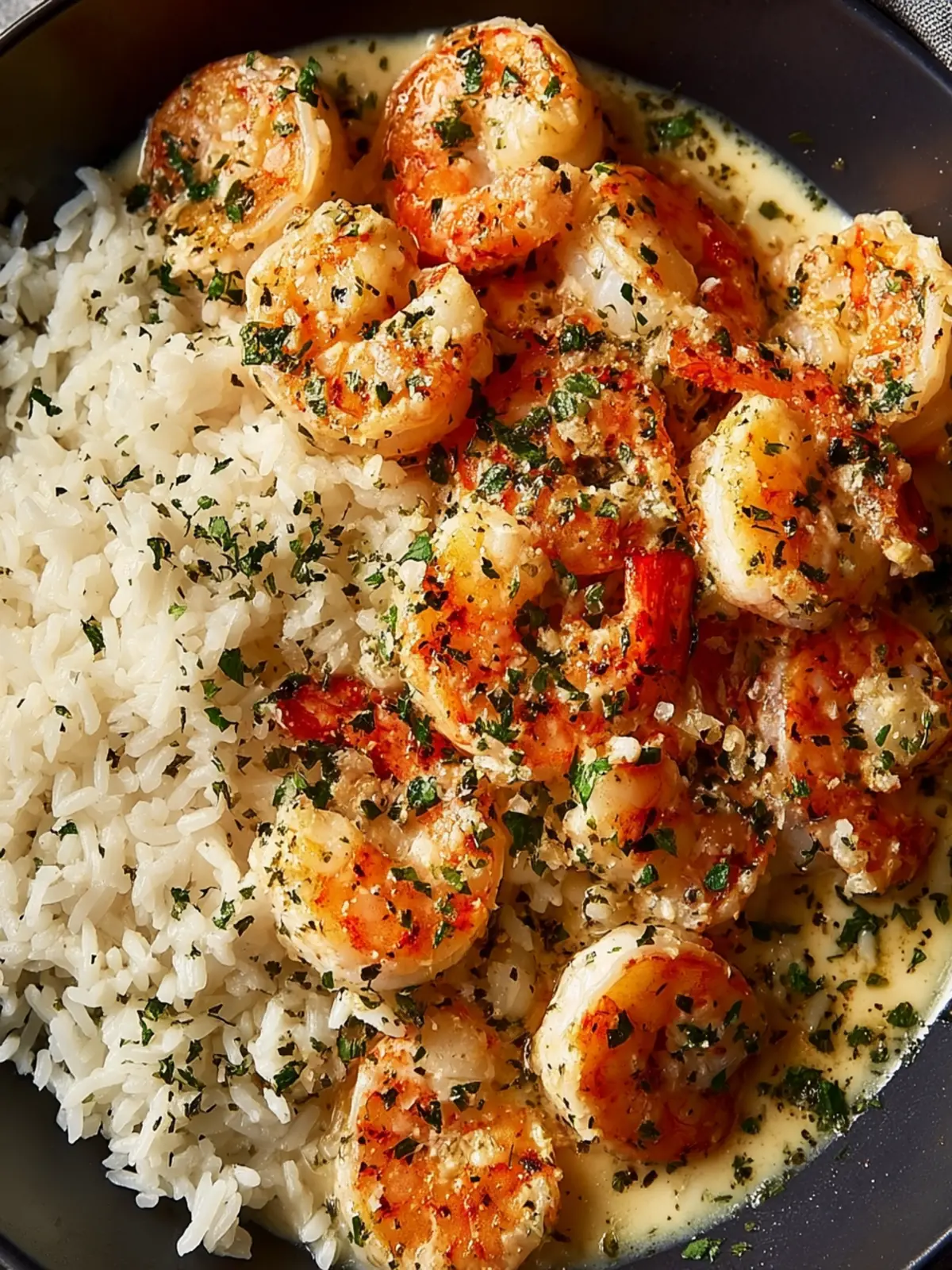 A delicious creamy garlic shrimp served over rice, perfect for a quick dinner!
