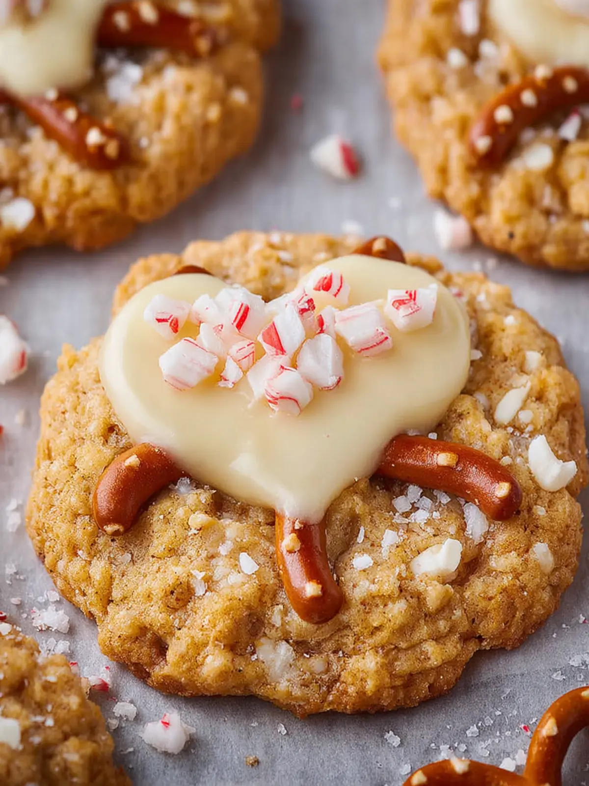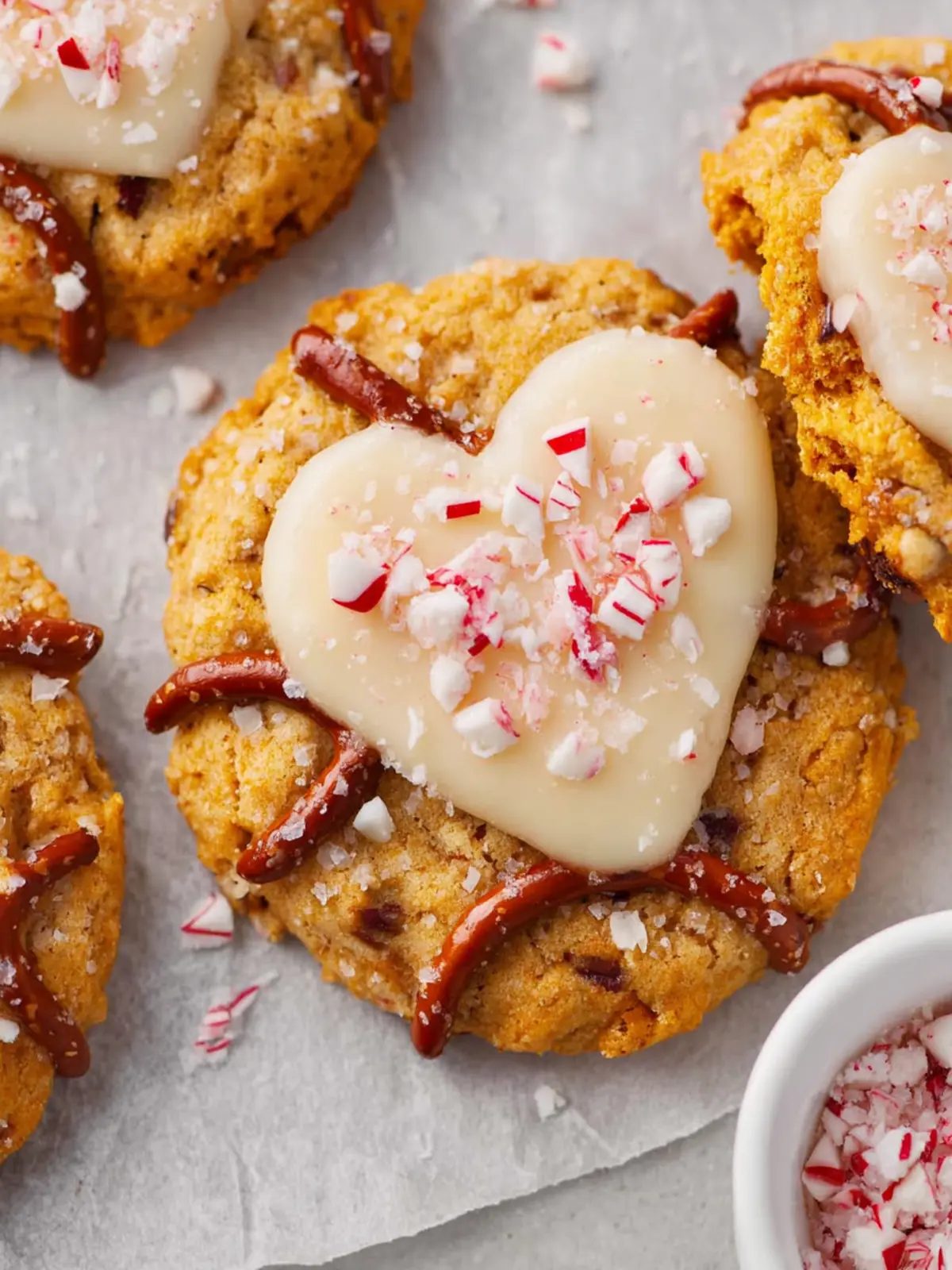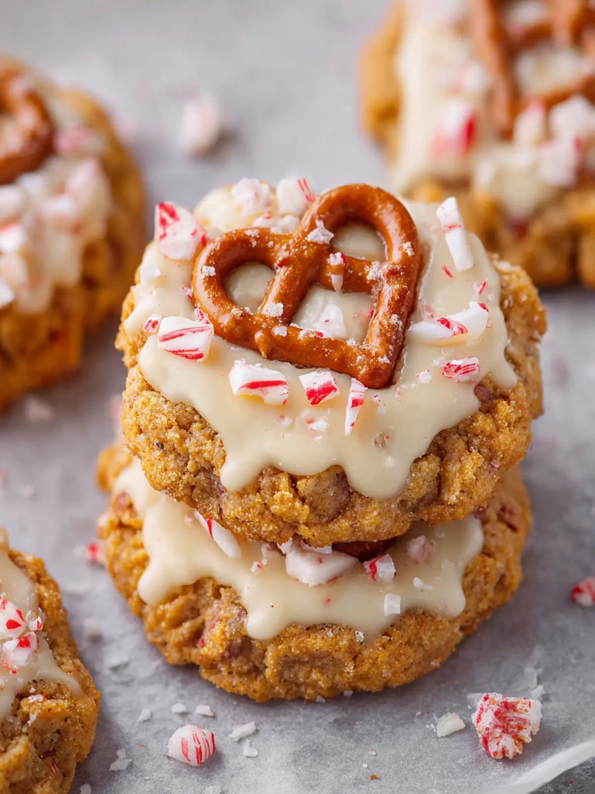 Visually Appealing: With their inviting color contrast, sprinkled with crushed peppermint and bits of pretzel, these cookies look as festive as they taste, making them a show-stopping addition to any dessert table.
