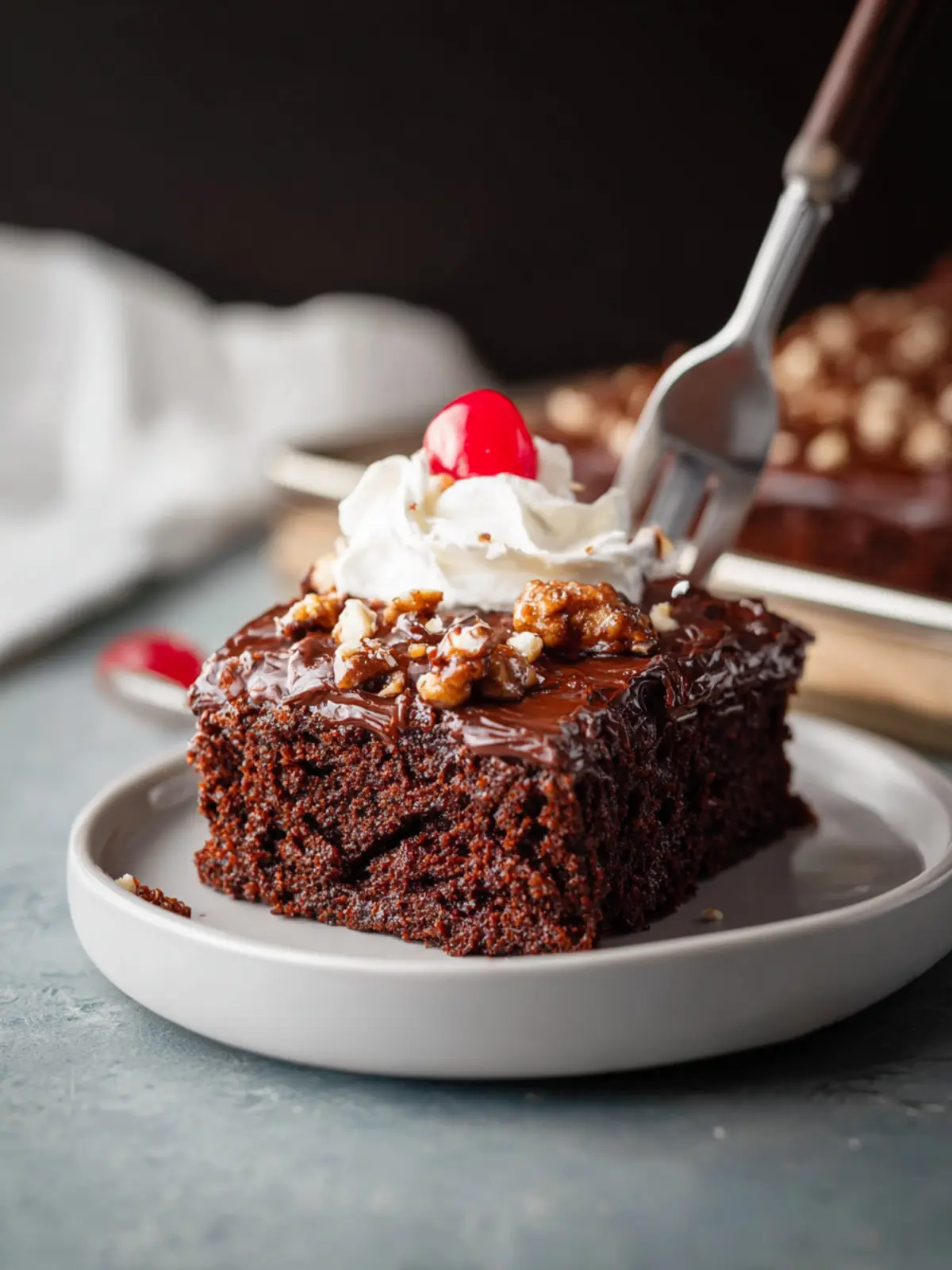 Top with Whipped Cream: For a lighter touch, a dollop of freshly whipped cream can enhance the cake’s rich chocolate flavor without overpowering it.