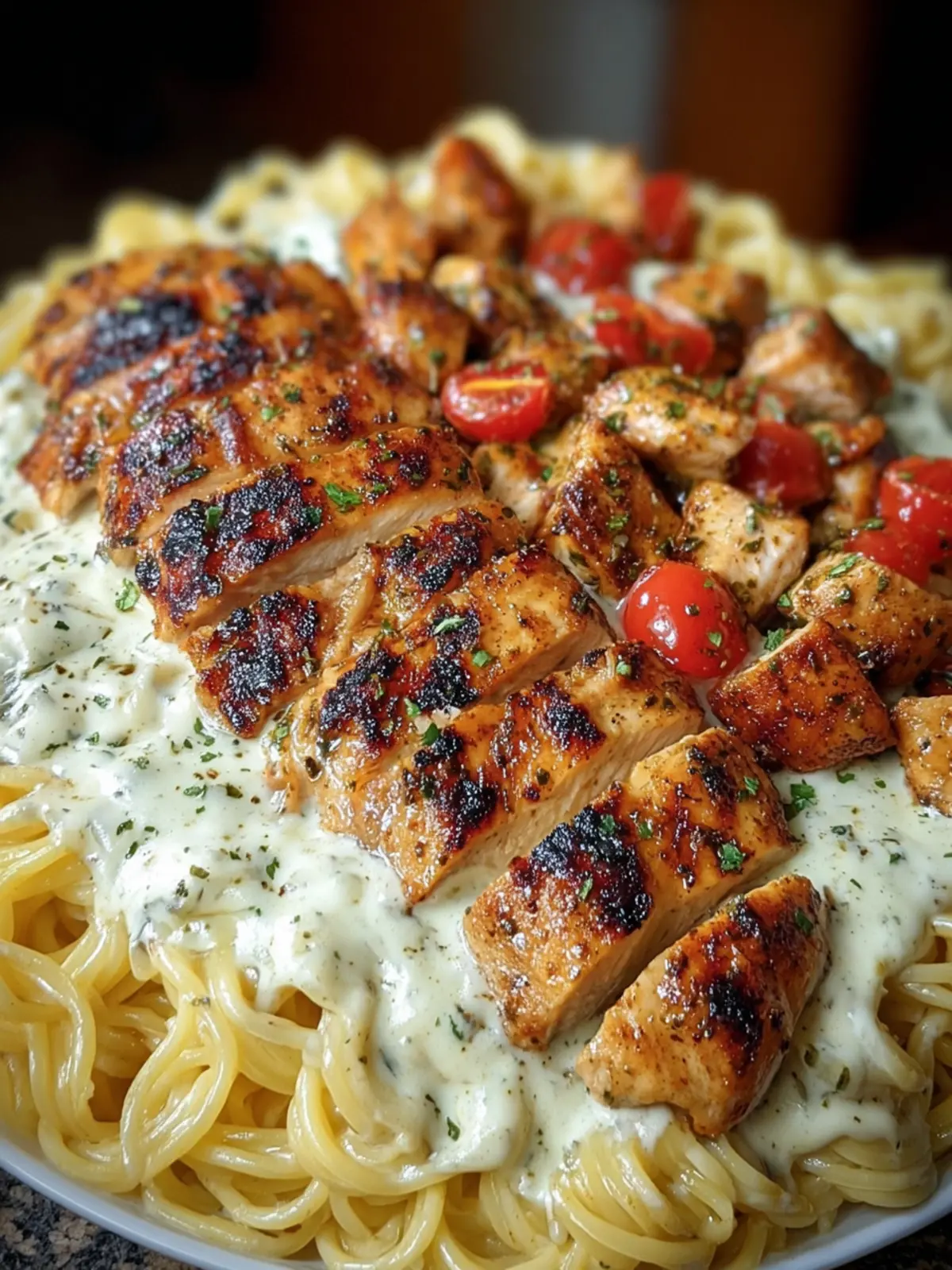 A delicious and creamy pasta dish featuring grilled chicken and a rich Alfredo sauce.