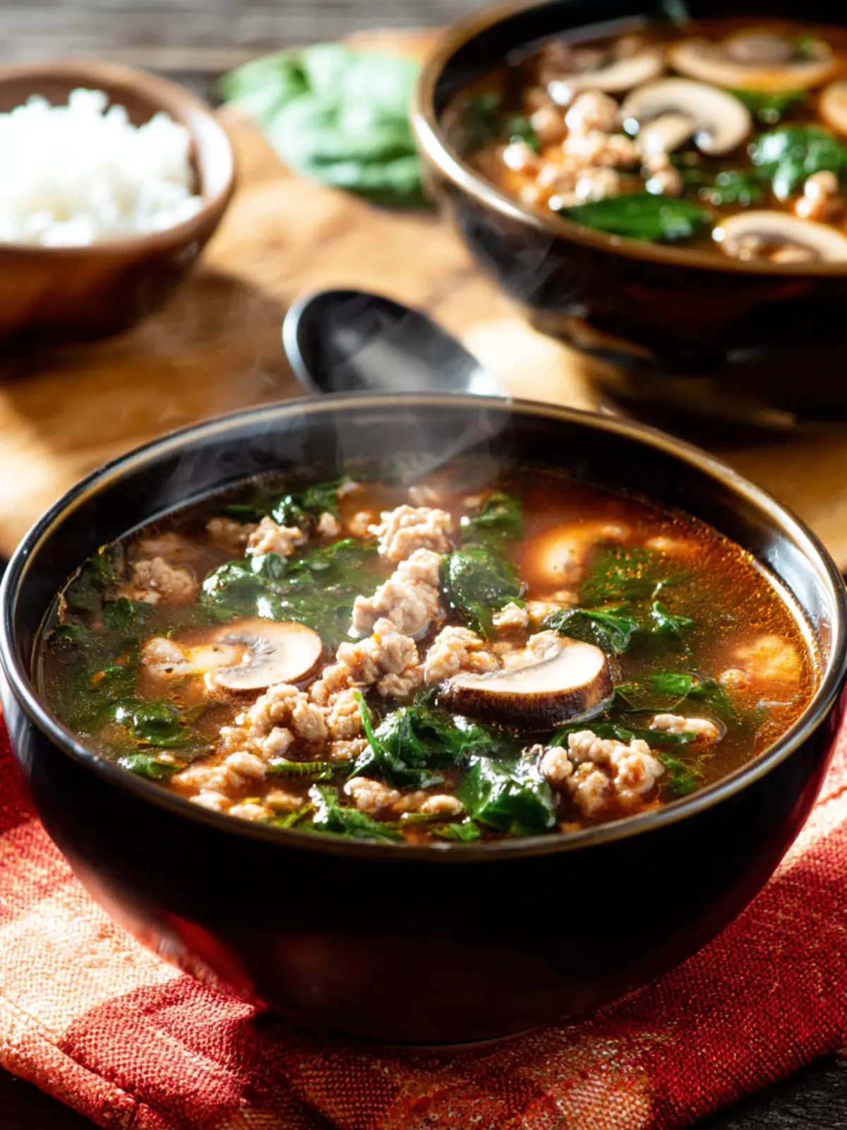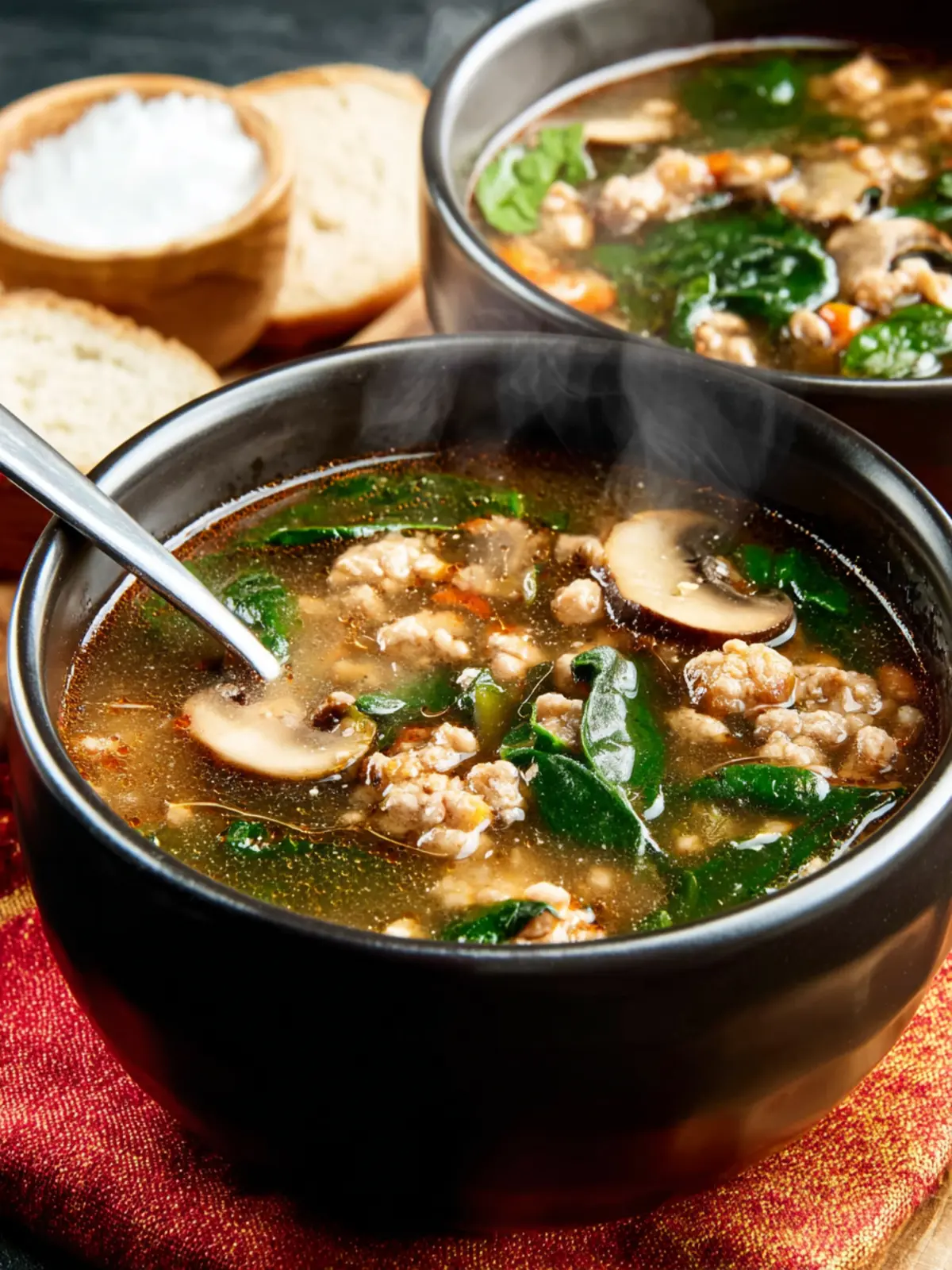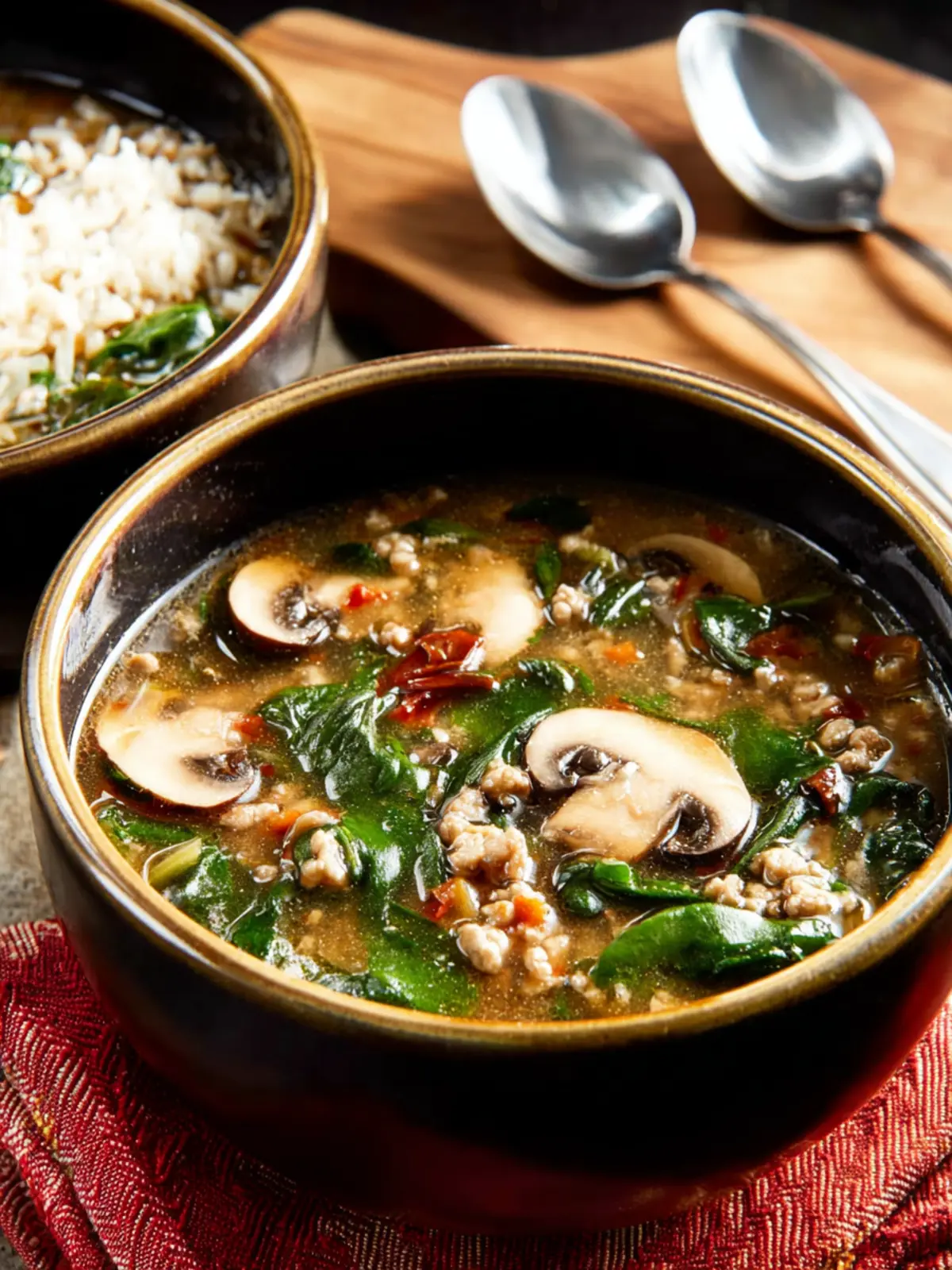 Ground Turkey Soup with Mushrooms and Spinach: Cozy Comfort Bowl