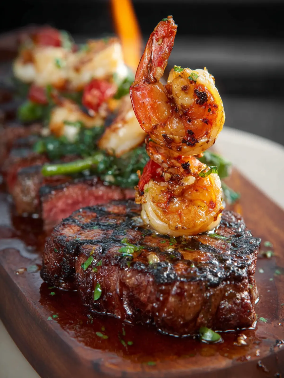 Spices: A combination of salt, pepper, and a pinch of paprika brings out the natural flavors in both the steak and shrimp, enhancing the overall dish.