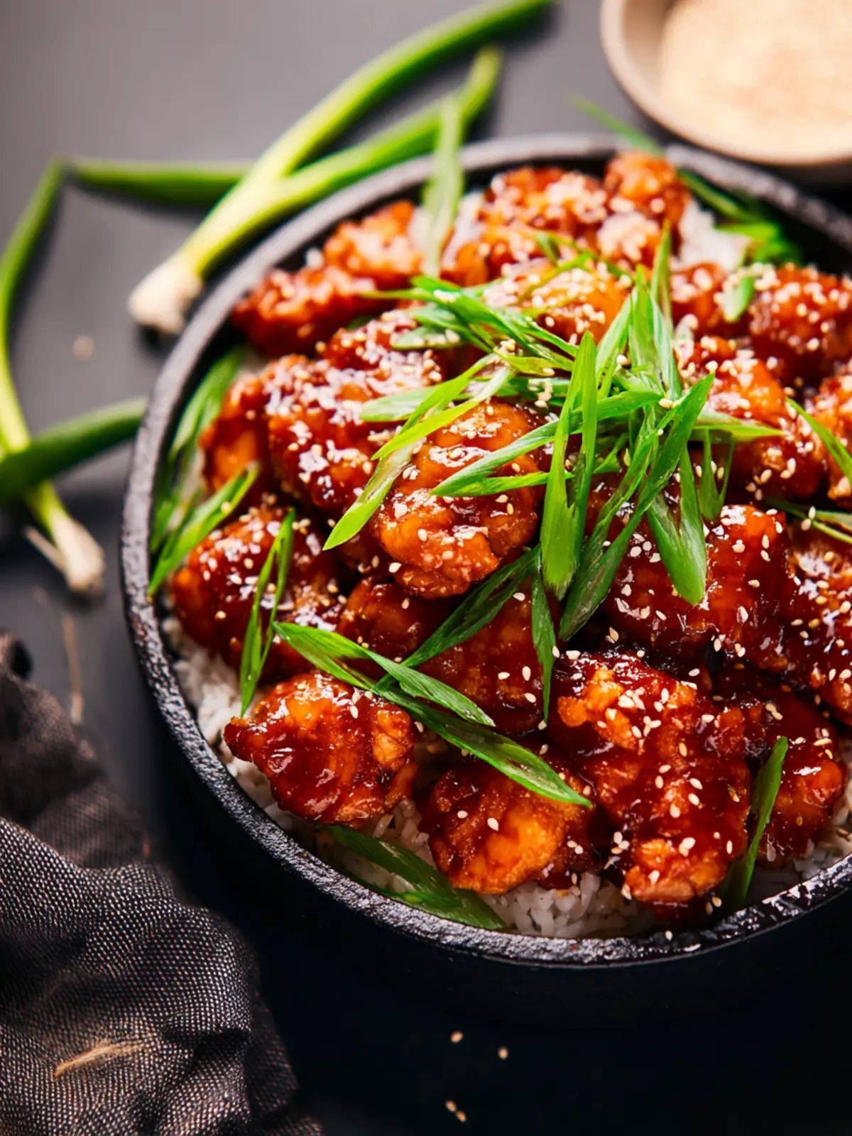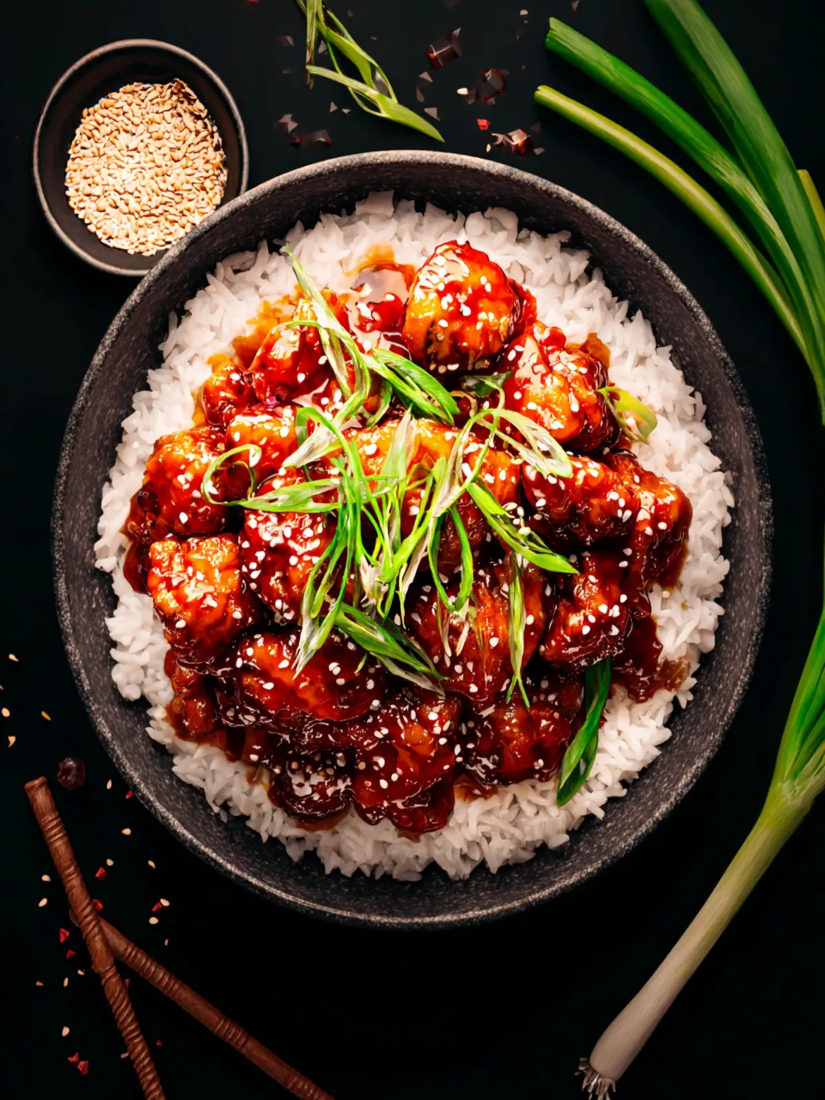 Once fried, toss your chicken in the glaze while it’s still hot for maximum adhesion. Garnish with sesame seeds and thinly sliced green onions for a pop of freshness. Also, don’t forget to serve with steamed rice and pickled vegetables for a classic touch.