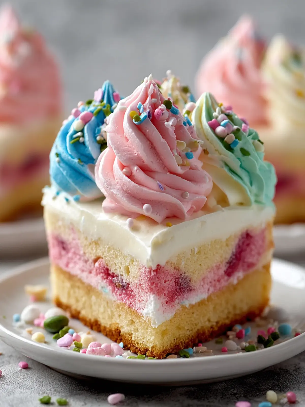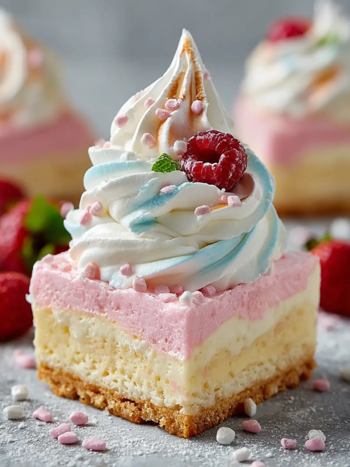 - Decorate: Pipe dollops of the remaining meringue on top, alternating colors for a whimsical effect. Sprinkle with colorful sprinkles for extra flair.