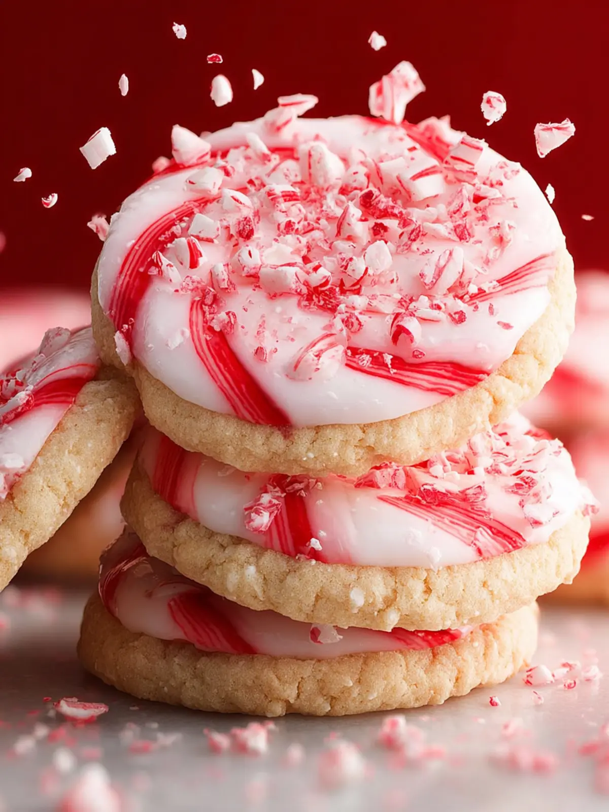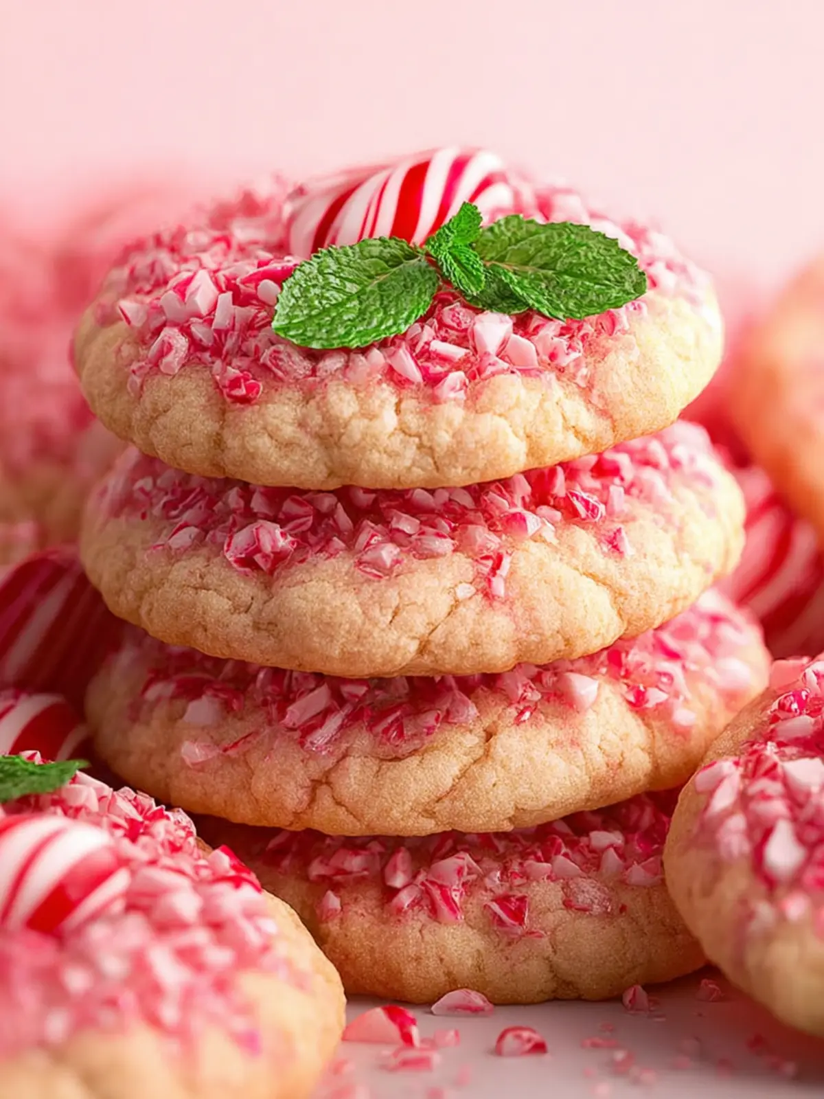 Delicious cookies featuring peppermint and Hershey’s Candy Cane Kisses, perfect for the holiday season.