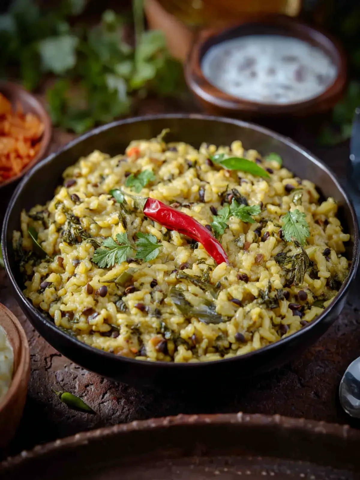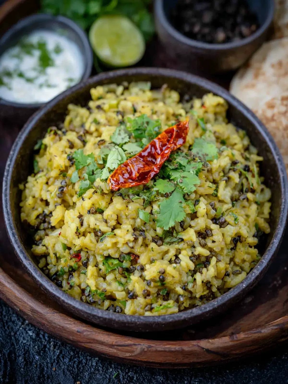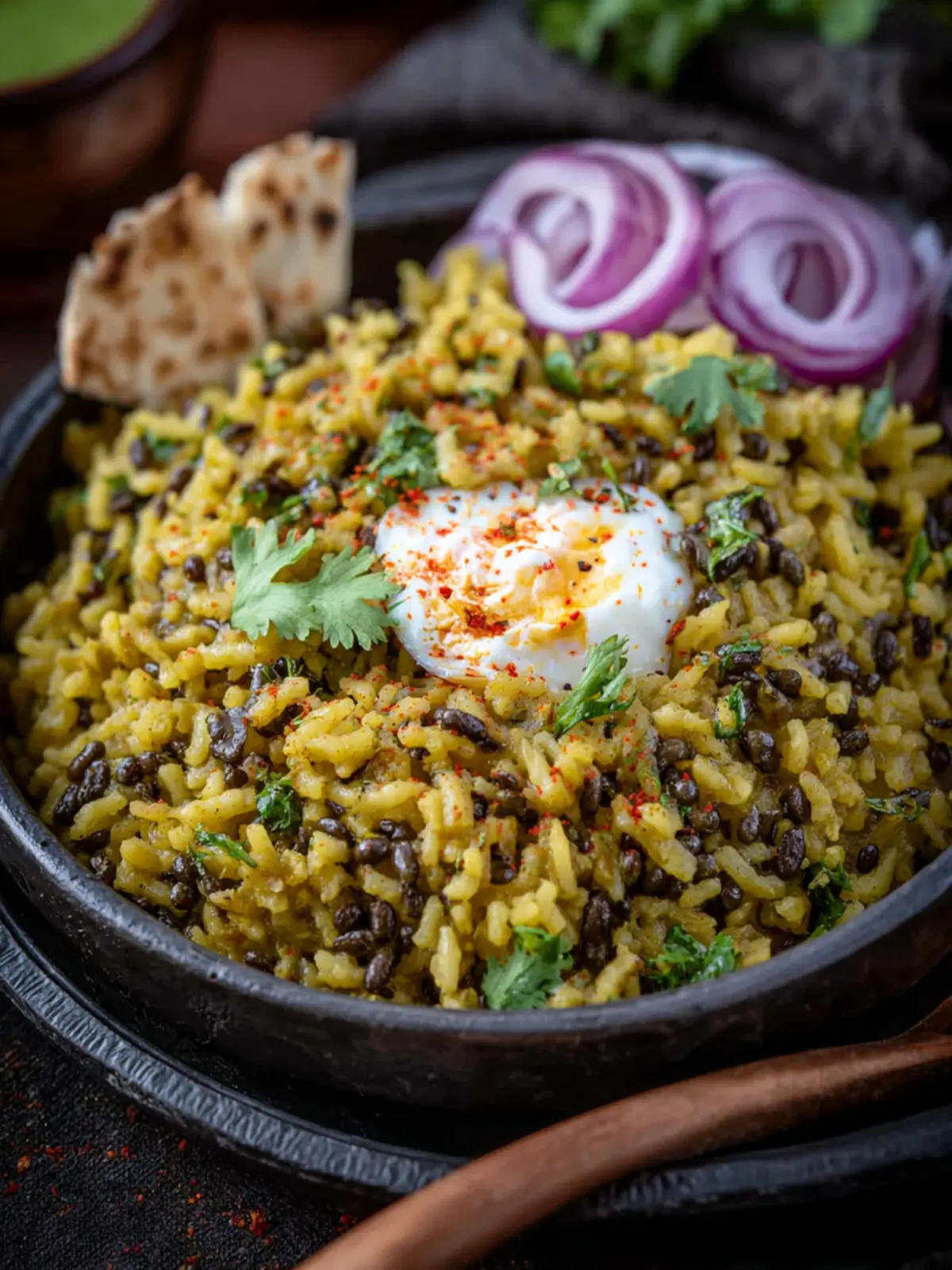 Urad Dal Khichdi is quite versatile and pairs well with various accompaniments. Here are some favorites: